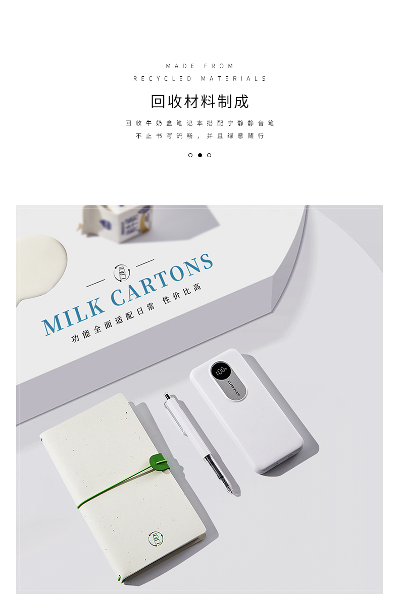 地球叔叔:環(huán)保禮品回收牛奶盒筆記本充電寶套裝 禮品已成功加入PPT!