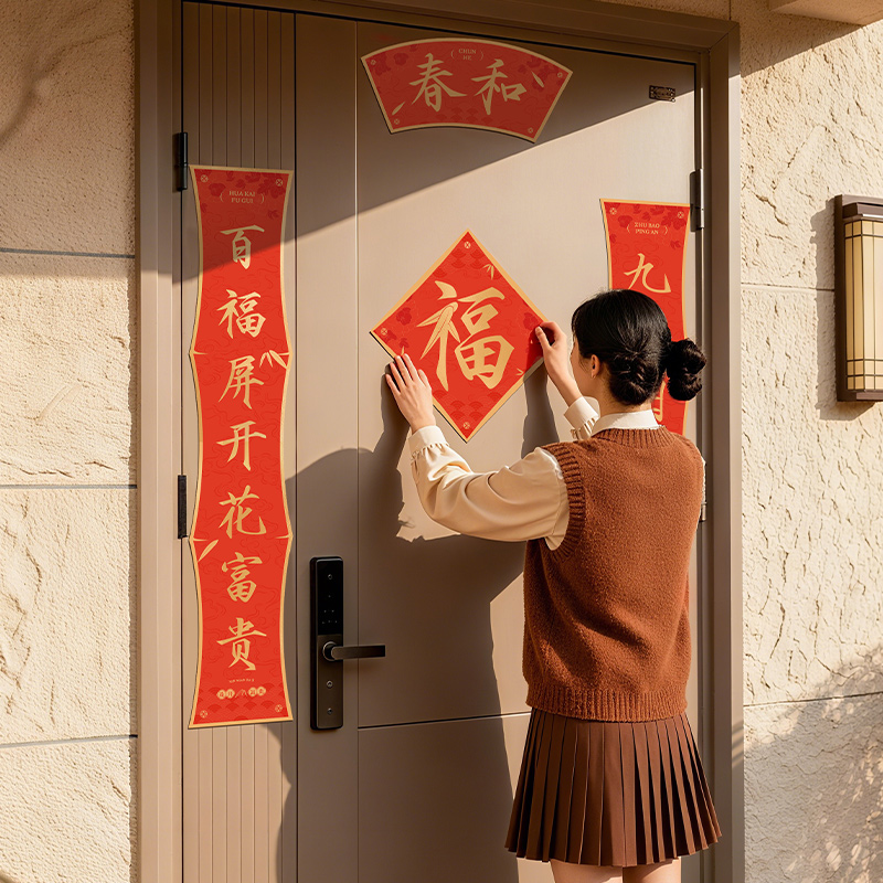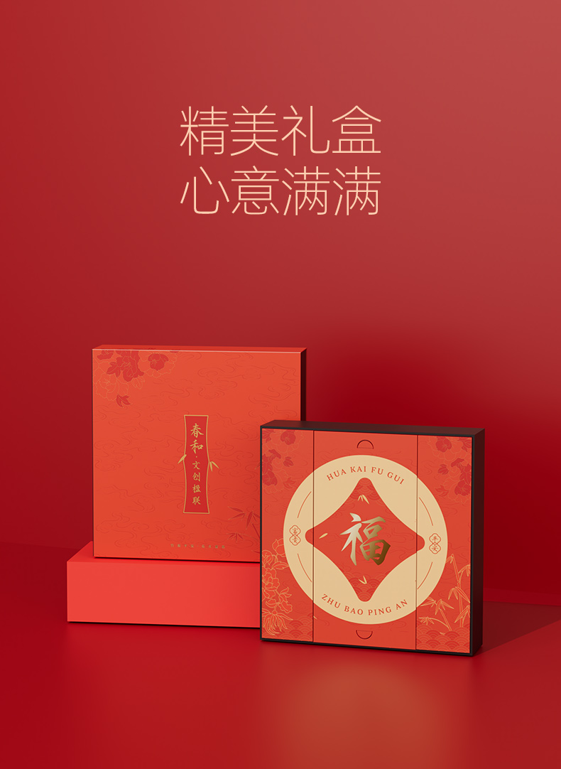 配置: ① 春和福字楹聯(lián)×1卷 (大福字*1丨橫批*1丨左·右大楹聯(lián)*1) ② 春和春條窗花×1卷 (小福字*1丨左·右春條*1丨窗花·花*1丨窗花·竹*1) ③ 春和大小紅包×1套 (萬元包*2丨富貴/平安簽*1丨紅包·花*4丨紅包·竹*4丨無痕膠*1) ④ 行運(yùn)醒獅本×1本 ⑤ 醒獅簽字筆×1支 ⑥ 精致包裝×1套