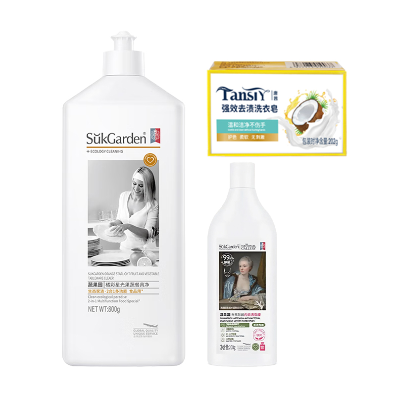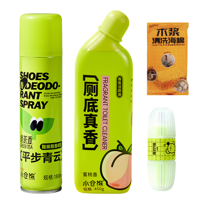 小倉熊香氛潔廁液(蜜桃香)450g 小倉熊鞋用除臭噴霧180ml 小倉熊馬桶掛籃-(單個裝)50g SukGarden蔬果園橘采星光果蔬餐具凈800g SukGarden蔬果園青蒿內(nèi)衣洗衣液200g Tansiy唐茜強效去漬洗衣皂202g 贈:Sckoes詩寇絲木漿清洗海綿1塊 小倉熊甄選禮盒(265*95*270mm)