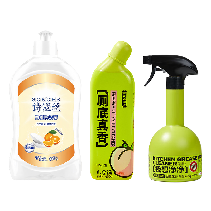 Sckoes詩蔻絲APG超濃縮洗潔精505g 小倉熊香氛潔廁液(蜜桃香)450g 小倉熊油污凈廚房深層清潔400g 小倉熊馬桶掛籃-(單個裝)50g 小倉熊除臭鞋球12g 小倉熊冰箱除味蛋-檸檬30g 贈:Sckoes詩寇絲木漿清洗海綿1塊 小倉熊甄選禮盒(265*95*270mm)