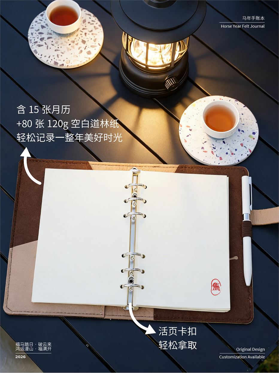貪吃貓文創(chuàng)2026馬年好運(yùn)筆記本復(fù)古風(fēng)創(chuàng)意毛氈手賬本禮品