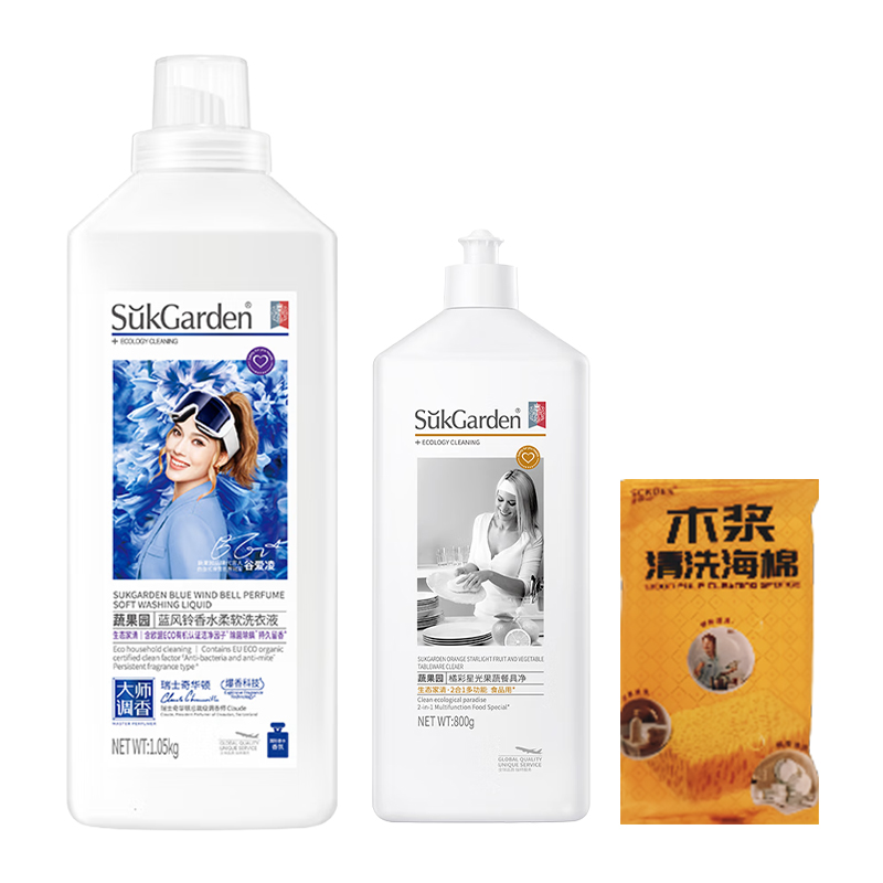 SukGarden蔬果園藍風鈴香水柔軟洗衣液1050g SukGarden蔬果園橘采星光果蔬餐具凈800g 小倉熊香氛潔廁液(蜜桃香)450g 小倉熊鞋用除臭噴霧180ml 小倉熊馬桶掛籃-(單個裝)50g 小倉熊冰箱除味蛋-檸檬30g 贈:Sckoes詩寇絲木漿清洗海綿1塊 小倉熊甄選禮盒(265*95*270mm)