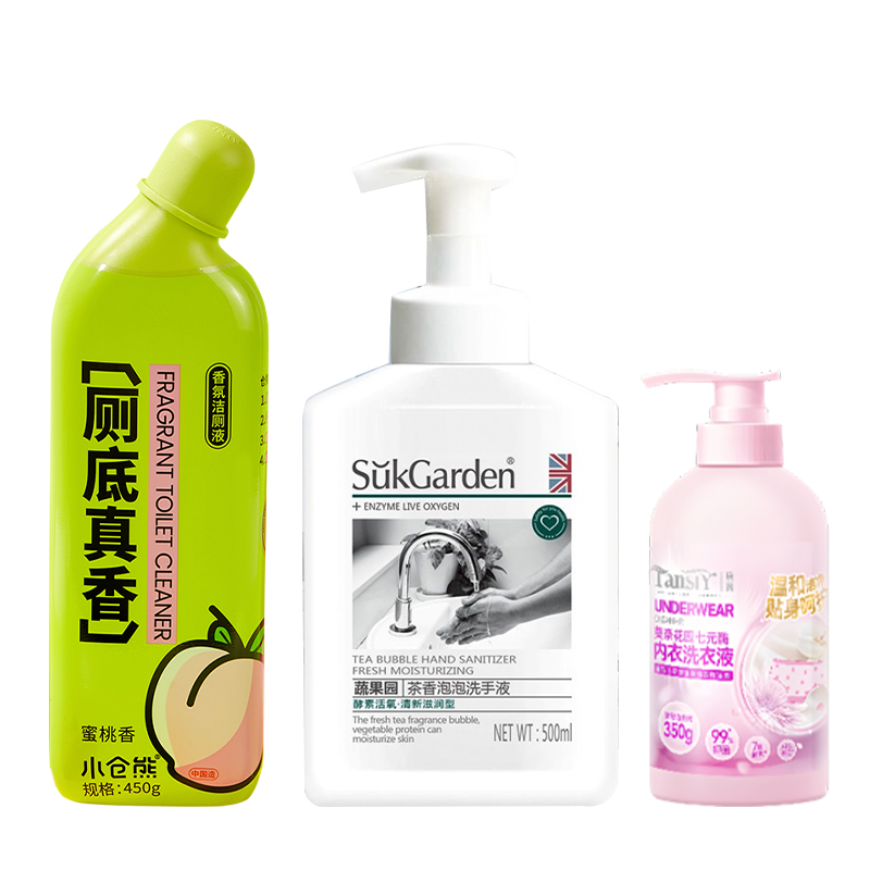 小倉(cāng)熊香氛潔廁液(蜜桃香)450g Tansiy唐茜莫奈花園七元酶內(nèi)衣洗衣液350g SukGarden蔬果園茶香泡泡洗手液500ml 小倉(cāng)熊馬桶掛籃-(單個(gè)裝)50g 小倉(cāng)熊冰箱除味蛋-檸檬30g 小倉(cāng)熊洗衣機(jī)清潔泡騰片15g*6顆 贈(zèng):Sckoes詩(shī)寇絲木漿清洗海綿1塊 小倉(cāng)熊甄選禮盒(265*95*270mm)