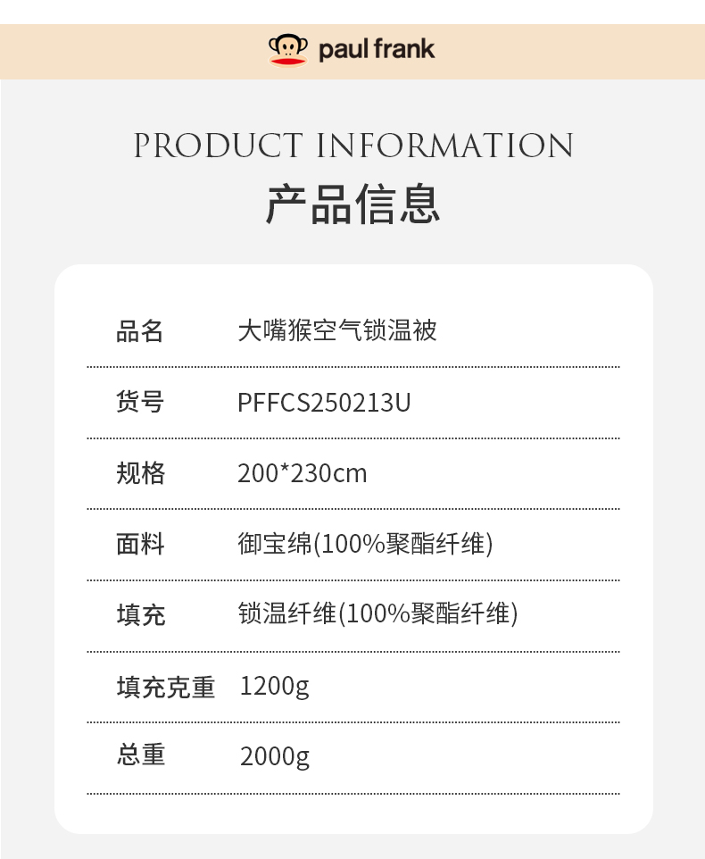 大嘴猴空氣鎖溫被200×230cm(2000g) 禮品已成功加入PPT!