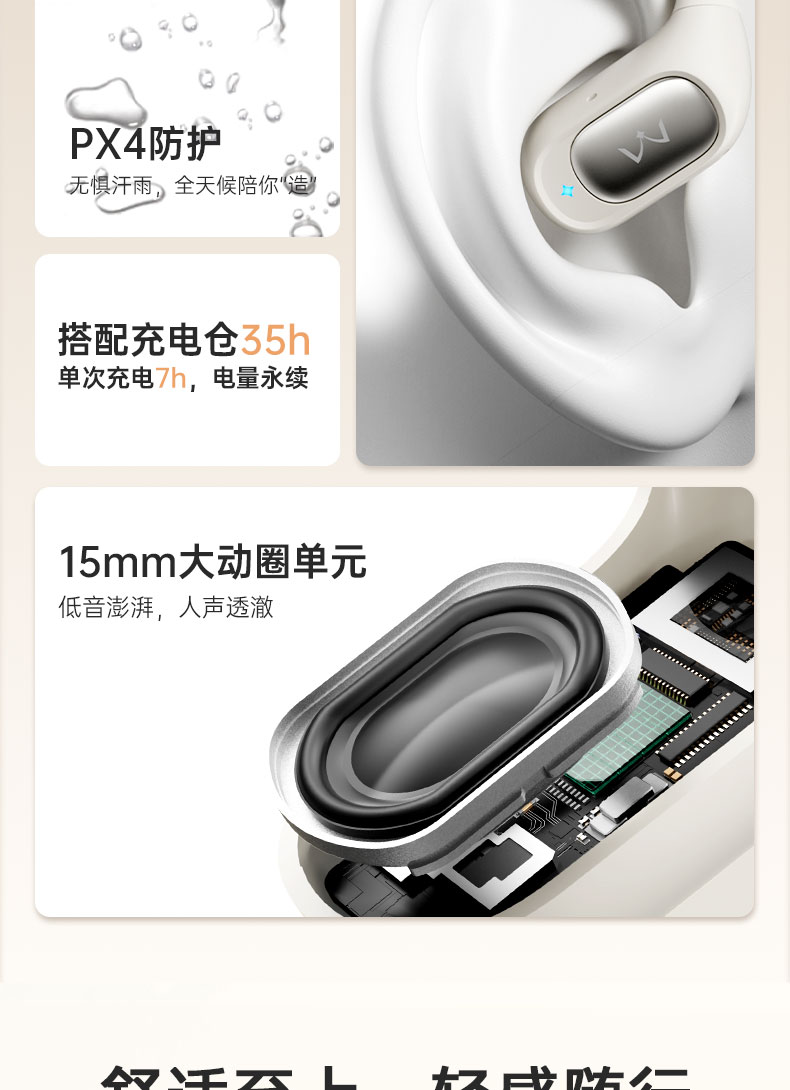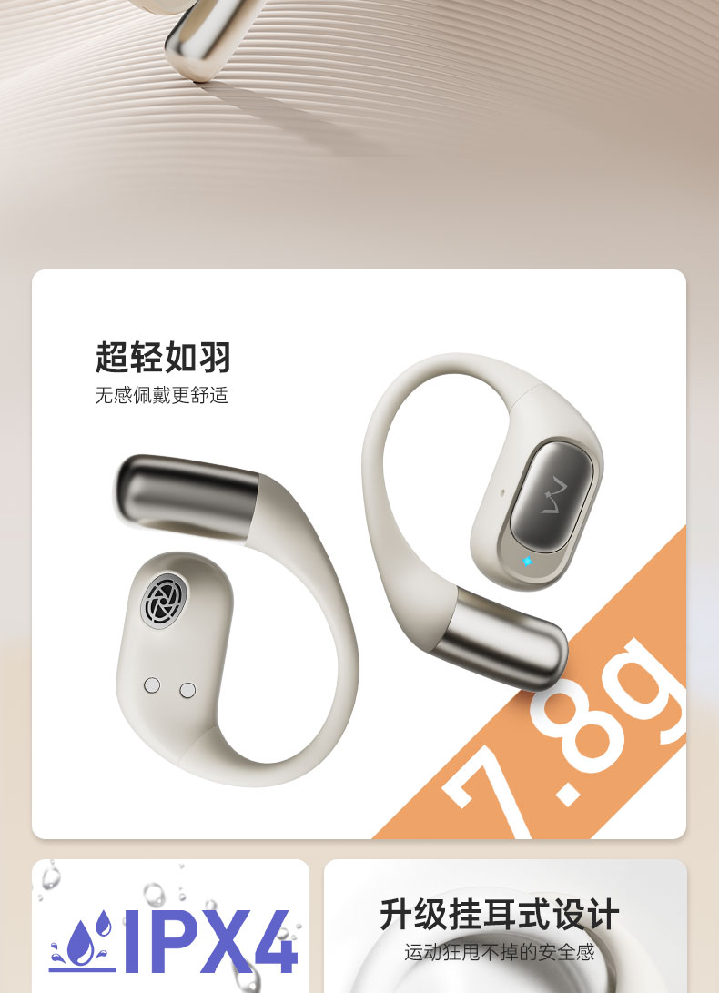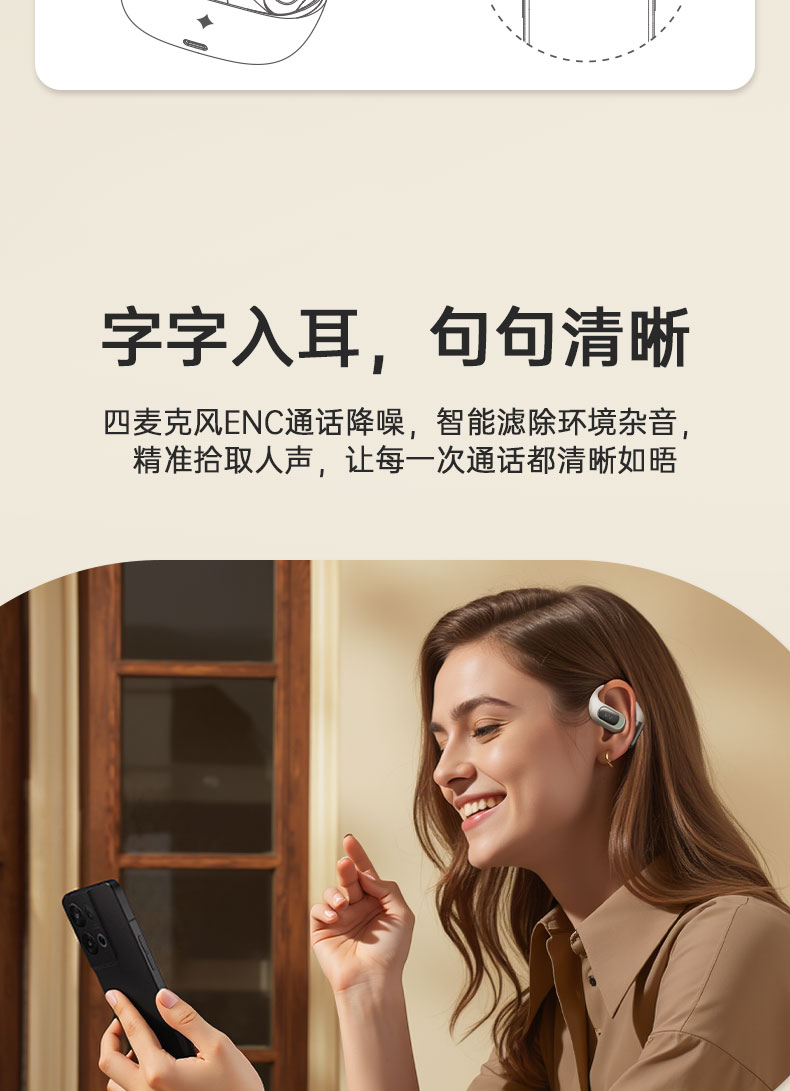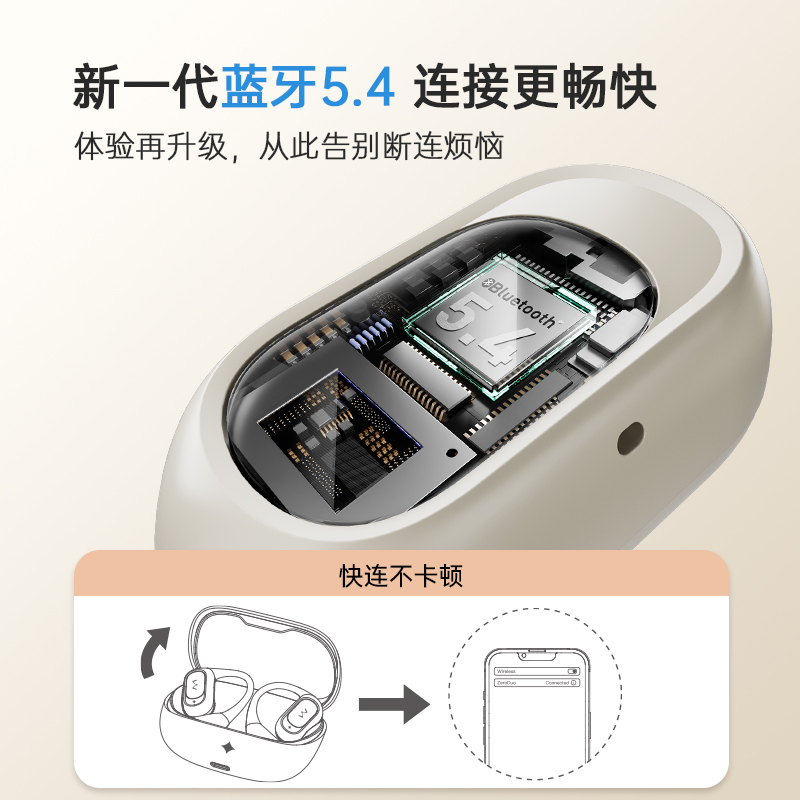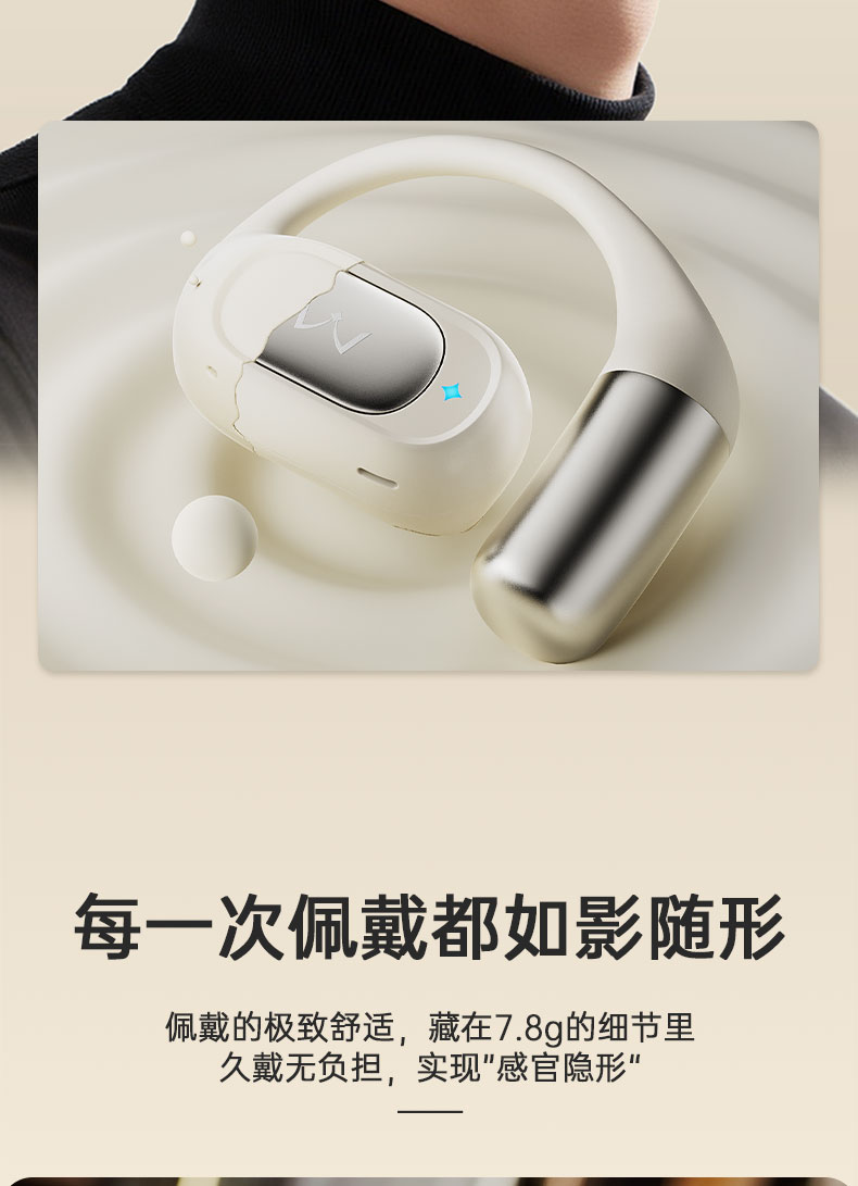 開放式空氣傳導設計,不封閉耳道,保持對環(huán)境的感知,聆聽更自然舒適。“0”干擾