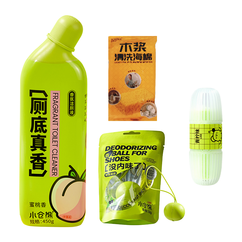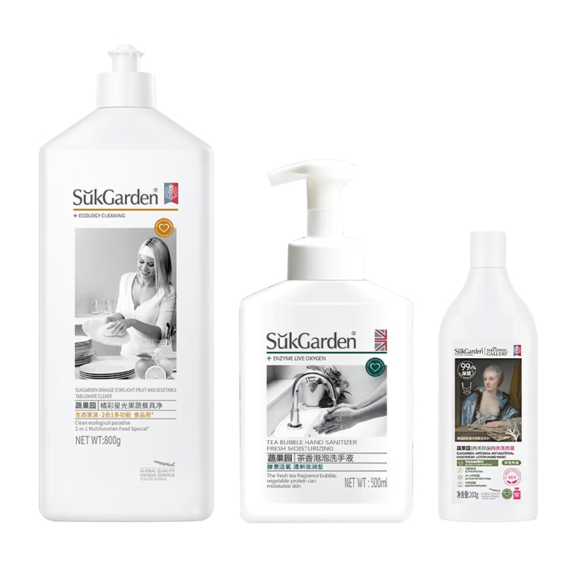 SukGarden蔬果園橘采星光果蔬餐具凈800g SukGarden蔬果園茶香泡泡洗手液500ml SukGarden蔬果園青蒿內(nèi)衣洗衣液200g 小倉熊香氛潔廁液(蜜桃香)450g 小倉熊馬桶掛籃-(單個裝)50g 小倉熊除臭鞋球12g 贈:Sckoes詩寇絲木漿清洗海綿1塊 小倉熊甄選禮盒(265*95*270mm)