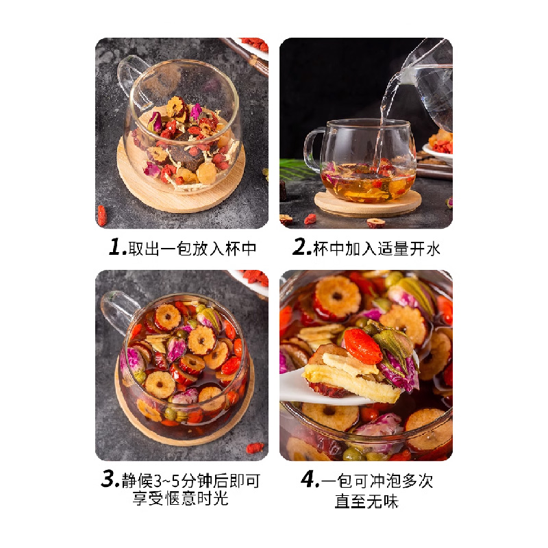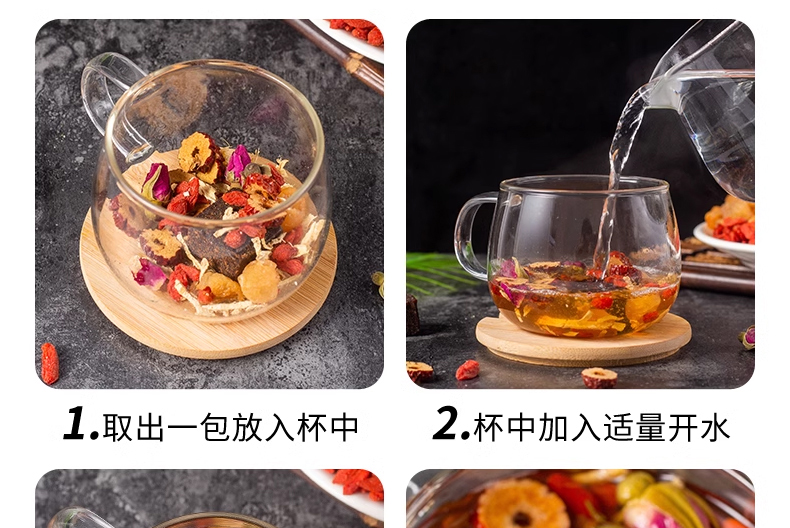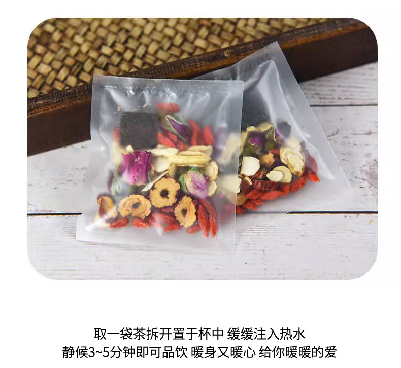產(chǎn)品配料:方塊黑糖、紅棗片、姜絲、枸杞、桂圓干、重瓣玫瑰花 盒尺寸:28*24*9.5 體積:0.116方 箱尺寸:58*40*50 箱重量:7.35kg