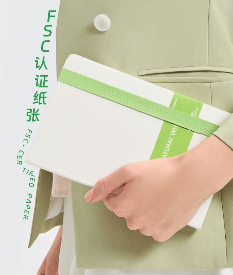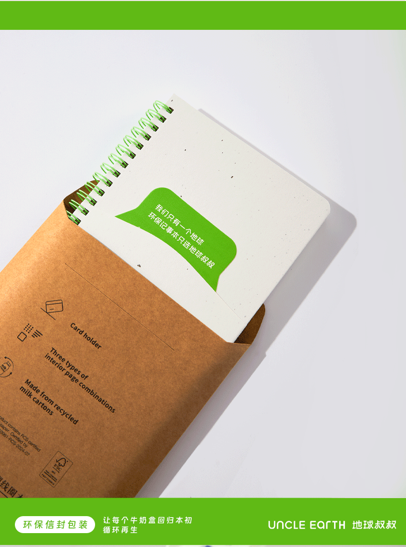 2.這款筆記本材質(zhì)經(jīng)過FSC認(rèn)證,我們賦予了牛奶盒,回收再利用的本心,低碳環(huán)保,為地球減負(fù)。