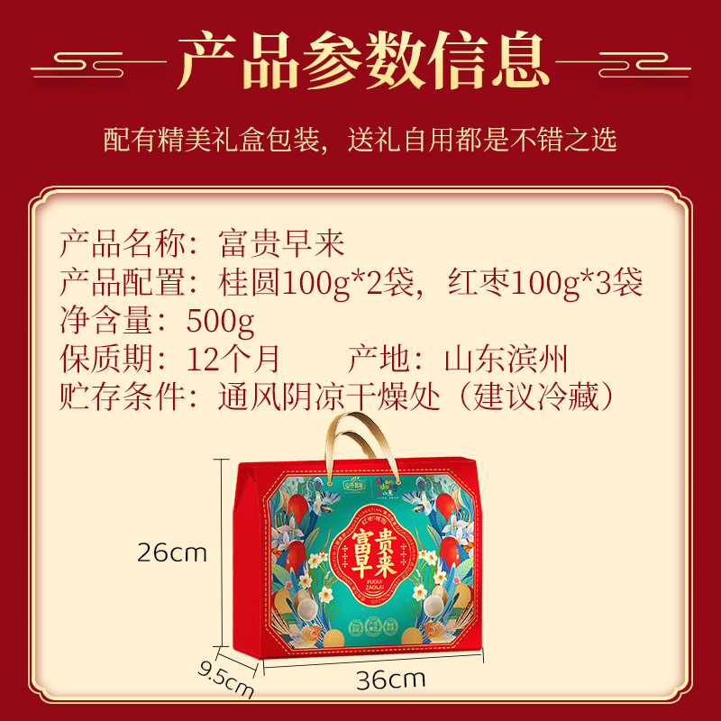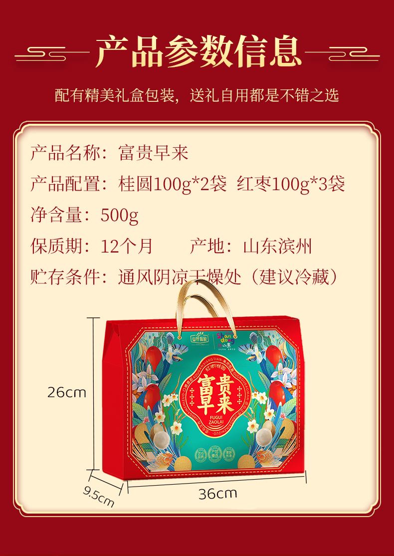 產(chǎn)品規(guī)格配置:桂圓100g*2袋、紅棗100g*3袋 盒尺 寸:36*9.5*26cm 箱尺寸:60*37.5*54 箱 體 積:0.122方 箱重量:10kg