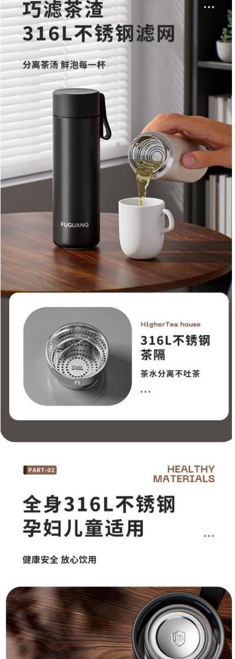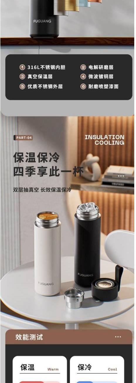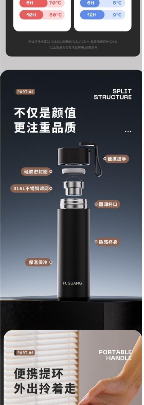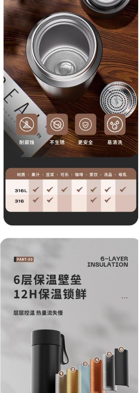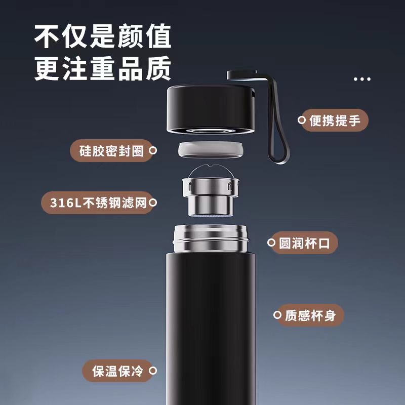顏色:黑色 白色 粉色 綠色 容量:480ml 尺寸:62*210mm 材質(zhì):316奧氏體不銹鋼內(nèi)膽,316不銹鋼濾網(wǎng)。 無尾真空超長保溫。 超輕杯身設(shè)計(jì),加寬硅膠提手隨身攜帶更方便。 包裝:單瓦盒