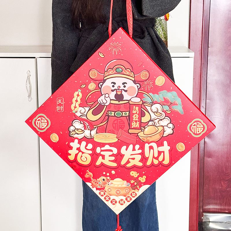 2、“錦鯉開運(yùn) 指腚發(fā)財”,既有雙重吉祥寓意,又與產(chǎn)品相呼應(yīng),禮盒圖案可剪紙用做新年裝飾。